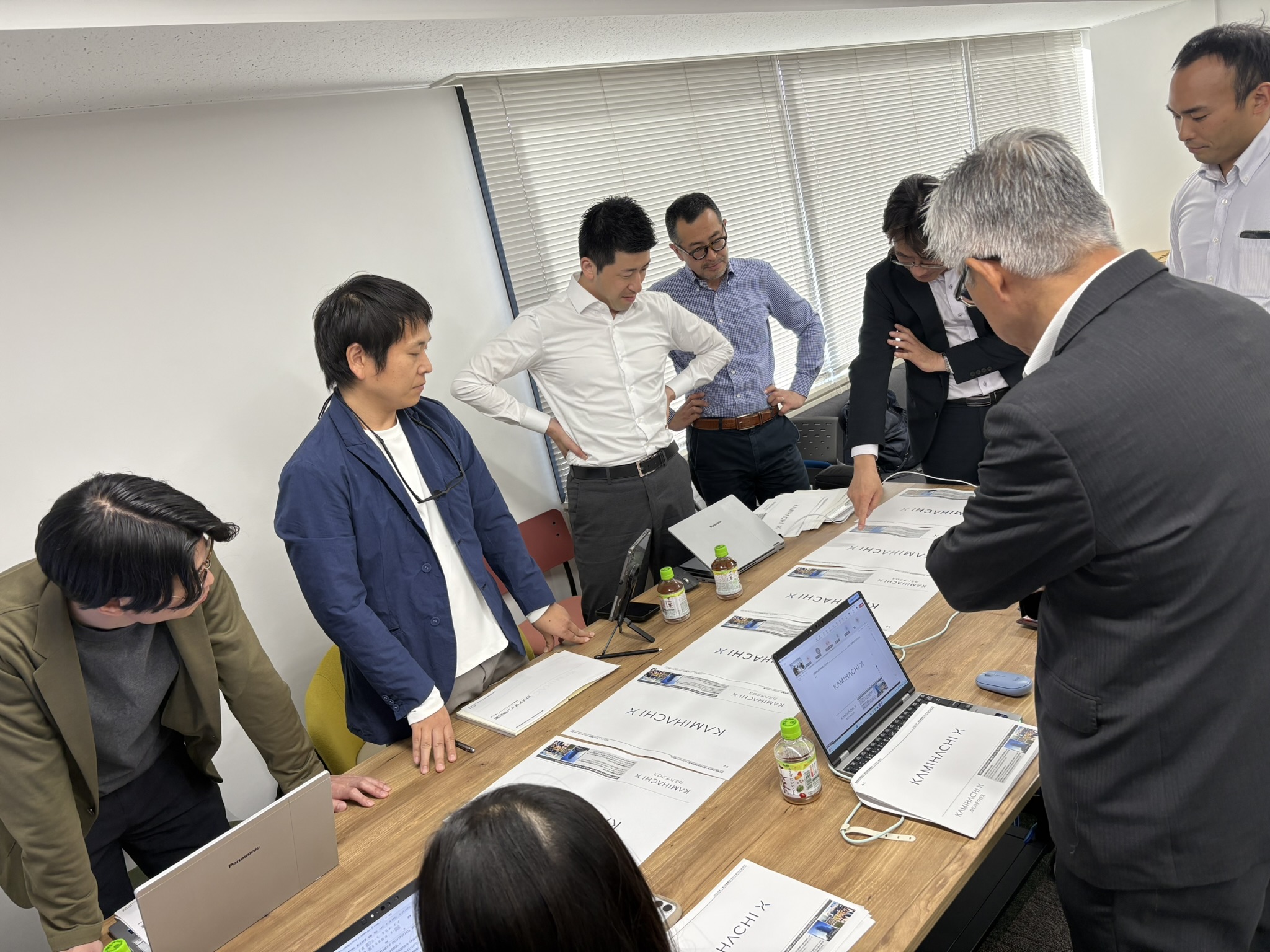 あとから気づいたのですが、5年前に「カミハチキテル」の名前を決めたときと同じ、まちなかの共創拠点にあるホワイトボードで、「カミハチクロス」のネーミングを絞る作業をしていたんです。