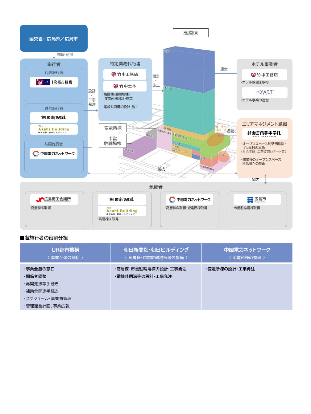 | 地権者 | 株式会社朝日新聞社、株式会社朝日ビルディング、 中国電力ネットワーク株式会社、広島商工会議所、広島市 |