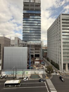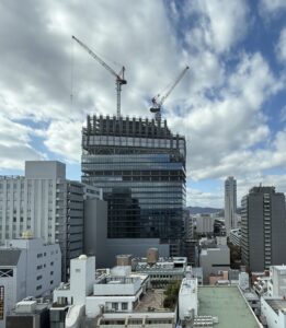地上鉄骨工事は第二節(地上から数えて2本目の鉄骨)に取り掛かっています。相生通りからも工事の様子が見えるようになりました。